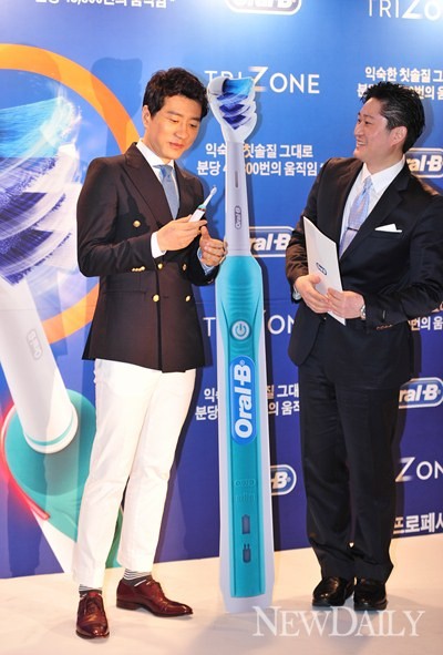 7일 오전 서울 중구 플라자호텔에서 배우 김명민, 박지빈이 참석한 가운데 오랄-비(Oral-B) '트라이존3000' 출시 이벤트를 진행했다.