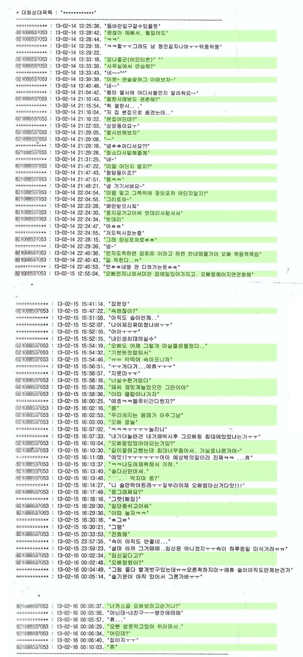 K군과 A양 사이의 전문 공개한 카톡 내용 중에서 이름이 유출된 부분이 있어, 수정된 자료로 재배포합니다.