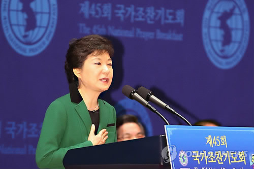 7일 코엑스에서 열린 45회 국가조찬기도회에 참가한 박근혜 대통령의 태도가 매우 진지했기 때문이다.박근혜 대통령은 기도회 인사말에서 아주 조심스럽고 겸손하게 말했다.