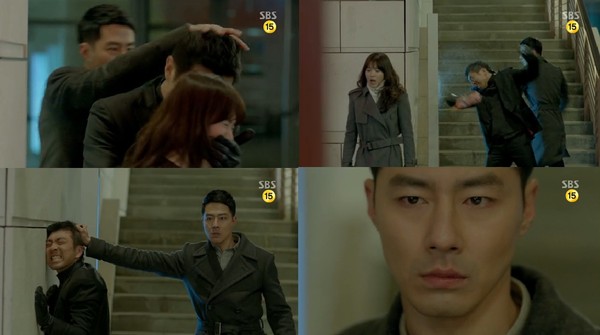 드라마 '그 겨울, 바람이 분다'에서 조인성이 폭발적인 카리스마를 선보여 여심을 흔들었다.지난 7일 방송된 SBS 수목드라마 '그 겨울, 바람이 분다(극본 노희경, 연출 김규태)' 9회에서는 오영(송혜교)이 조무철(김태우)를 만나러가다 위험에 빠지는 상황이 그려졌다.