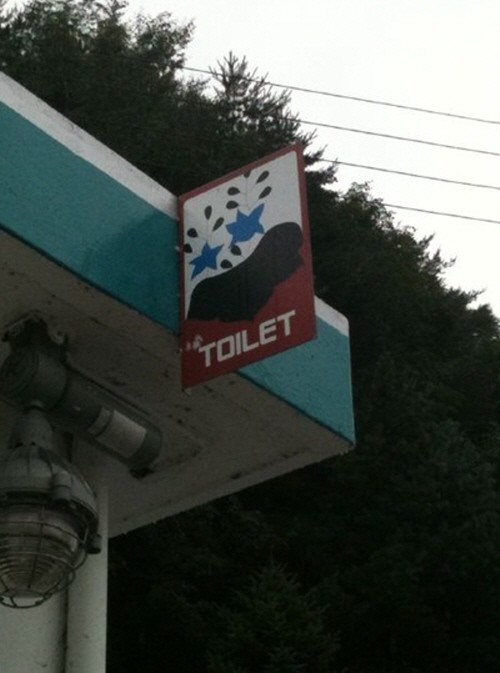 게재된 사진에는 독특한 화장실 간판의 모습이 담겨 있다. 이 화장실 간판은 화투패 중 하나인 ‘똥 쌍피’ 그림을 모태로 ‘Toilet’(화장실)이라고 씌어져 있다. 화투용어로 ‘똥’이라고 불려지는 만큼 한 눈에 어떤 곳인지 알 수 있게 했다.