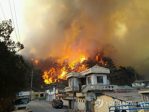 이 산불도 강풍으로 쉽게 잡히지 않아 10일 오전에 진화됐다.이번 산불은 초기에 진화하지 못해 도심까지 번진 것으로 알려졌다.