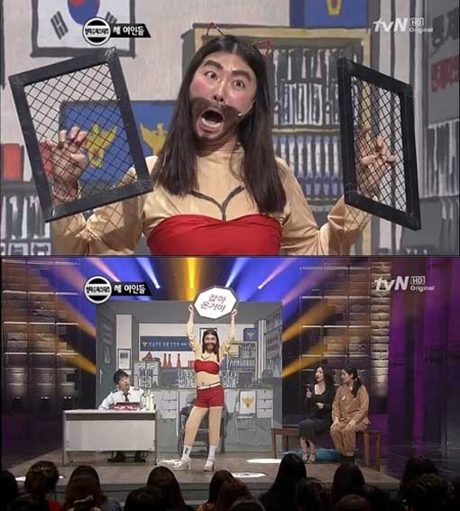 특히, 매직으로 가슴골 분장을 그려넣어 몸매의 볼륨감을 강조했으며, 한층 진해진 검은 수염으로 충격적인 비주얼을 완성시켰다.