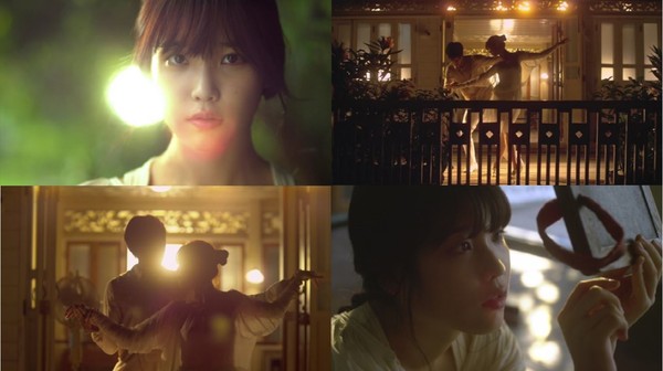 아이유는 6분17초 분량의 뮤직비디오에서 여성미를 물씬 풍기는 하얀색 원피스를 입고 등장해 눈길을 끈다.
