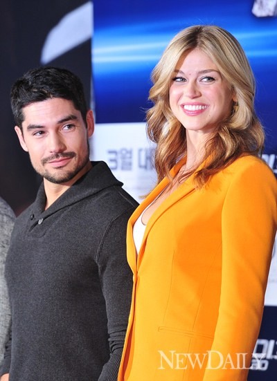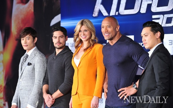 11일 오전 서울 여의도 콘래드호텔에서 영화<지.아이.조 2 3D(감독:존 추)(G.I.Joe:Retaliation)> 내한 기자회견이 존 추 감독을 비롯해 배우 이병현, 드웨인 존슨, 애드리앤 팰리키, D.J. 코트로나가 참석한 가운데 진행됐다.