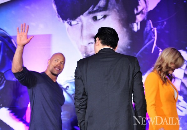 11일 오전 서울 여의도 콘래드호텔에서 영화<지.아이.조 2 3D(감독:존 추)> 내한 기자회견이 존 추 감독을 비롯해 배우 이병현, 드웨인 존슨, 애드리앤 팰리키, D.J. 코트로나가 참석한 가운데 진행됐다.