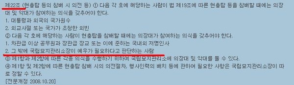 ▲ 국립묘지의 설치 및 운영에 관한 법률 시행령 22조