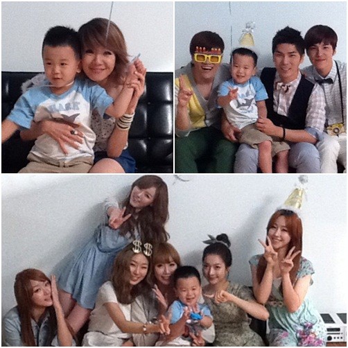 사진 속 윤후는 포맨, 달샤벳, 미 등 윤민수의 후배 가수들과 함께 다정한 포즈를 취하고 있는 모습이 담겨 있다. 특히, 고깔모자를 쓰고 천진난만한 미소로 브이 포즈를 취하는 윤후의 귀엽다.