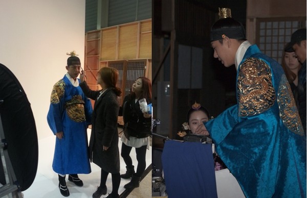 이와 관련해 14일 SBS 탄현제작센터에서 가진 포스터 촬영 현장에 푸른색 곤룡포를 입고 등장한 유아인은 시종일관 진지한 모습으로 옴므파탈 숙종의 이미지를 완벽히 표현해 냈다는 후문이다.