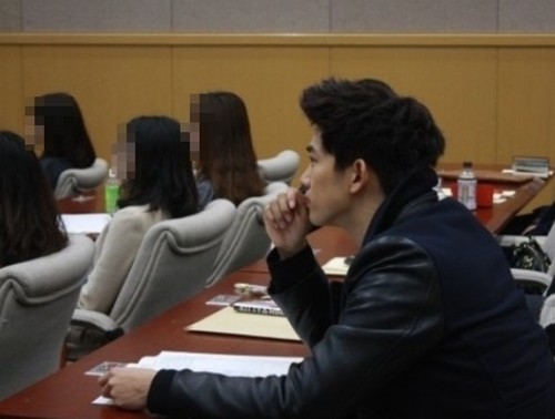 남성그룹 2PM의 옥택연이 강의실에서 포착됐다.최근 한 온라인 커뮤니티 게시판에는 ‘옥택연, 고려대학교 대학원 공부’라는 글과 함께 사진 한 장이 올라왔다.