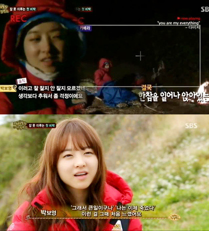 다음 날 박보영은 “난 정말 추운 게 너무 싫다. 한잠도 못 잤다”라며 “그래서 ‘큰일이구나. 나는 이제 죽었다’이런 걸 그때 처음 느꼈다”고 털어놨다.