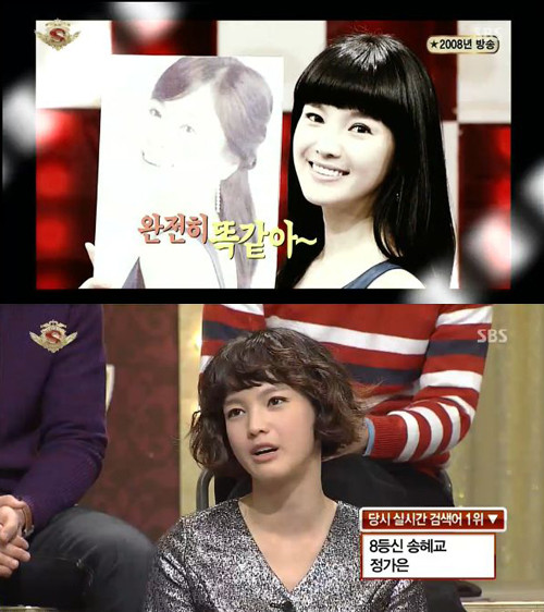 5년 전 스타를 꿈꾸던 일반인 참가자로 ‘스타킹’에 출연한 정가은은 당시 ‘8등신 송혜교’로 화제를 모은 바 있다.