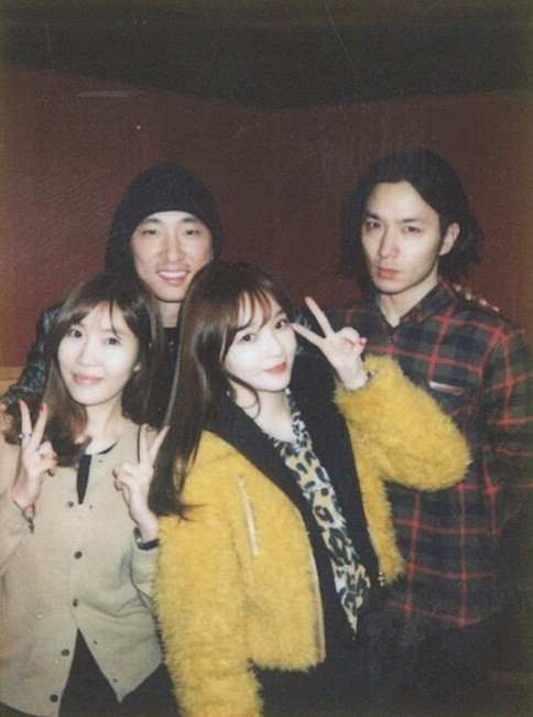 사진 속에는 다비치 멤버 이해리, 래퍼 버벌진트, 프로듀서 라이머의 모습이 담겨져 있다. 이들은 이번 앨범에 참여한 뮤지션들이다.
