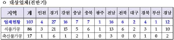 HACCP(Hazard Analysis Critical Control Point, 식품 위해요소 중점 관리제도) 인증업체로 2012년에 지적을 받지 않은 업체 중 지난 3년 사이 지적을 받지 않은 우수업체 40곳은 이번 점검 대상에서 제외된다.