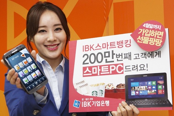 IBK기업은행(은행장 조준희)은 스마트뱅킹 가입자 200만명 돌파를 앞두고 이벤트를 실시한다고 19일 밝혔다.이번 이벤트는 스마트뱅킹 200만번째 가입 고객에게 최신형 스마트PC를, 199만번째와 201만번째 고객에게 백화점상품권 20만원권을 증정한다.