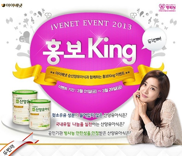아이배냇㈜(대표이사 전석락)에서 산양유아식 좋은 점을 알리는 ‘홍보 King 이벤트’ 2차 이벤트를 진행한다.지난 1월 24일부터 2월 22일, 약 한달간 진행된, 1차 홍보King 이벤트가 성황리에 종료되면서, 그 성원에 힘입어 이번 2차 홍보king 이벤트를 시작하게 된 것.이번 2차 홍보King 이벤트는 오는 3월 29일(금)까지 매주 홍보킹을 선정해 외식상품권이나 주부들이 선호하는 마트 상품권을 증정하는 프로모션 행사다.