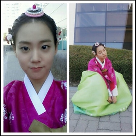 사진 속 한승연은 귀여운 머리장식을 한 채 분홍색 저고리와 연두색 치마의 고운 한복을 입고 상큼한 매력을 뽐내고 있다. 특히, 간담회가 끝난 이후 긴장이 풀려버린 탓인지 한복을 입고 바닥에 풀썩 주저 앉은 모습이 눈길을 끈다.
