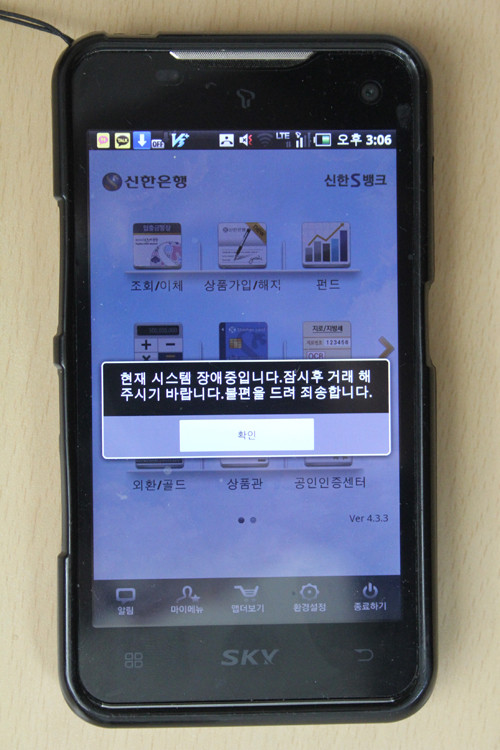 "폰뱅킹 이용자 과다로 서비스가 일부 지연처리되고 있습니다.