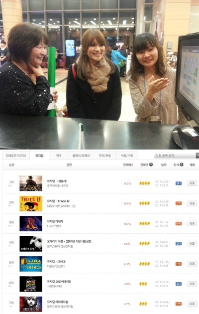 지난 2월 20일 공연 시작 4주차인 지금도 예매순위 상위권에 랭크되며 저력을 과시했다. 특히, 주 5회 ‘마티네 공연’을 포함한 총 주11회 공연임에도 불구하고 외국인 관람객들의 티켓 구매율이 상당하다. 낮 공연의 주 관람 층은 일본, 홍콩, 중국 등 아시아권의 팬들과 주부들로 한류스타를 보기 위해 공연장을 찾는 많은 해외팬들로 국내 공연장이 북새통을 이룬다.