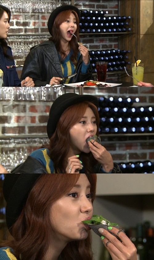 이런 그녀의 모습에 제작진은 “마치 음식 CF의 한 장면 같다. 섹시 퀸답게 평범하게 음식을 먹는 모습조차 왠지 섹시한 광고처럼 보인다”라고 평하기도 했다.
