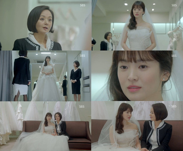 지난 21일 방송된 SBS 수목드라마 '그 겨울, 바람이 분다(극본 노희경, 연출 김규태, 이하 '그 겨울')'에서 오영(송혜교)은 왕비서(배종옥)와 함께 웨딩드레스를 보러갔다.