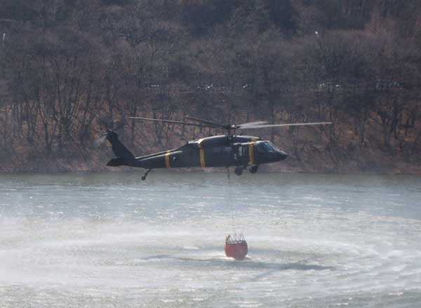 이 제안이 받아들여지자 美2사단 소속 조종사들은 UH-60 블랙호크 헬기를 타고 출동했다.블랙호크 승무원들은 '밤비 버켓(소방용 대형 버켓)'으로 인근 저수지에서 물을 퍼와 화재 진압을 도왔다.
