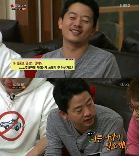 이날 김준호는 ‘인간의 조건’ 방송 모니터링 이야기를 꺼내며 “방송 후 게시판을 보니까 내가 나쁜 놈이 돼 있더라”고 비난폭주했던 글들을 떠올렸다.