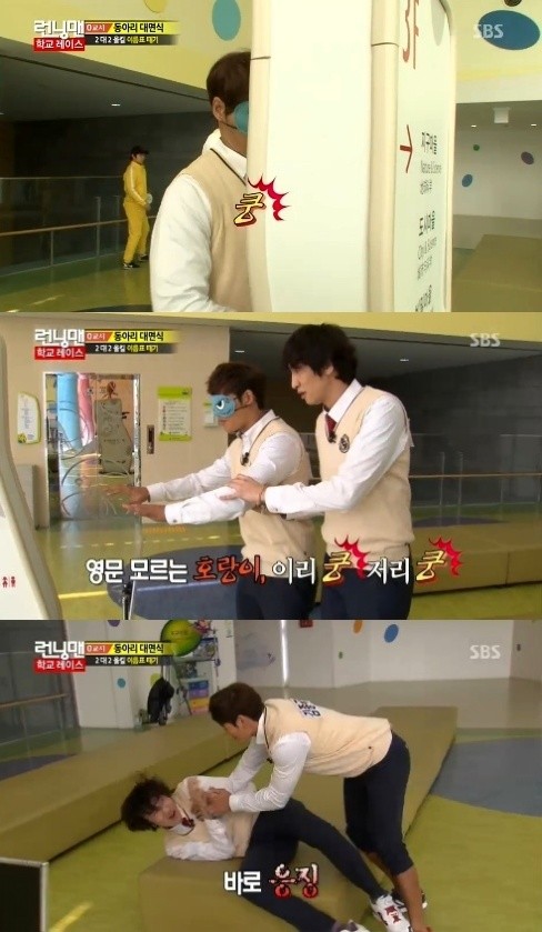 이날 이광수는 스태프인 척 하며 안대를 쓴 김종국을 데리고 다니면서 일부러 여기저기에 부딪치게 했다. 그는 김종국을 일부러 벽에 부딪치게 하는가 하면 계속해 장애물 쪽으로 유도해 김종국을 당황하게 만들었다.