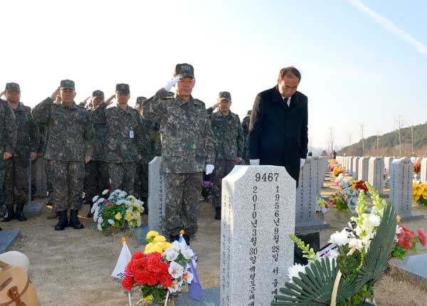 최윤희 해군참모총장이 25일 아침, 대전 국립현충원을 찾아 천안함 46용사와 故한주호 준위, 연평도 포격도발, 제2연평해전 전사자 묘역을 참배했다.