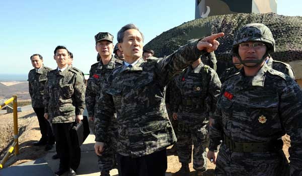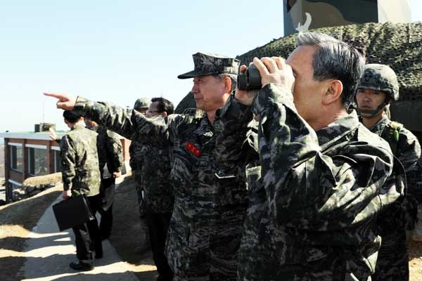 김관진 장관을 비롯한 군 수뇌부가 백령도 전방 OP(관측소)를 찾아,