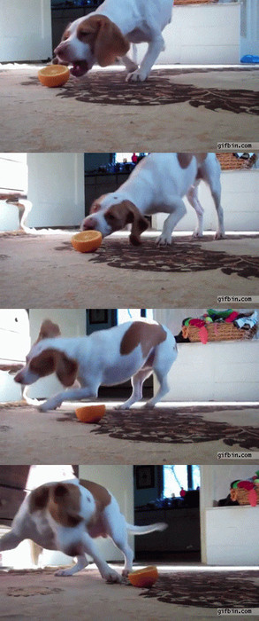 공개된 영상 속에는 개가 바닥에 떨어진 오렌지의 맛을 보는 장면이 담겨 있다. 오렌지에 관심을 보이던 개는 다가가 살짝 맛 본 뒤 신맛에 깜짝 놀라 비틀거리며 자리를 떠난다.