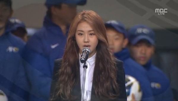지난 26일 서울 사암 월드컵경기장에서 열린 2014 브라질월드컵 최종 예선 A조 5차전 대한민국과 카타르의 경기에서 허가윤은 애국가를 부르기 위해 무대에 섰다.