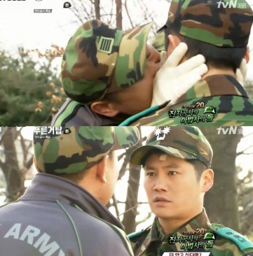 최종훈이 웃음버섯을 먹고 대대장 이장훈과 뽀뽀를 하며 큰 웃음을 선사했다.지난 27일 방송된 tvN 군디컬드라 ‘푸른거탑’에서는 최종훈이 캐낸 웃음버섯 때문에 생긴 에피소드가 그려졌다.