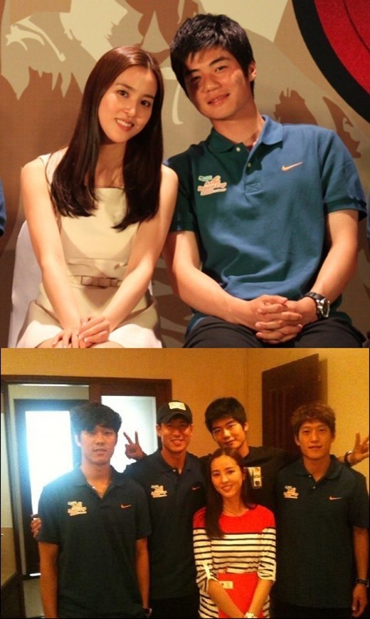 또 다른 사진은 축구선수 정조국의 아내인 배우 김성은이 트위터에 공개한 것. 한혜진이 박주영, 정조국, 기성용, 이청용 선수와 함께 나란히 서서 환하게 웃고 있는 모습이 담겨 있다.