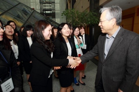 이석채 회장은 이날 직접 신입사원들을 배치부서까지 인솔해 해당 팀장에게 인계하며 창의적 인재 육성을 당부했다.