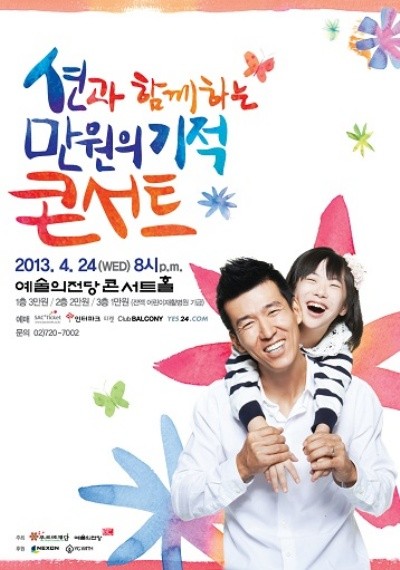 션과 함께하는 ‘만원의기적 콘서트’는 4월 24일(수) 8시 예술의전당 콘서트홀에서 개최되며 1층 3만원, 2층 2만원, 3층 1만원이다.