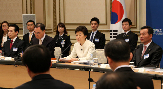 “최근 강력범죄, 성범죄 등이 이어지는데 국민이 불안해하지 않도록 튼튼한 사회안전망 구축을 최우선 과제로 삼아야 한다”고도 말했다.박 대통령은 경찰관, 소방관 등 현장공무원과 관련해서는 “국민을 보호하는 게 경찰, 소방관의 책임이라면 그들을 보호할 책임은 정부에 있다. 근무환경을 포함해 처우개선, 인력충원, 안전장비 개선 등이 차질없이 이뤄질 수 있도록 각별히 챙겨달라”고 지시했다.