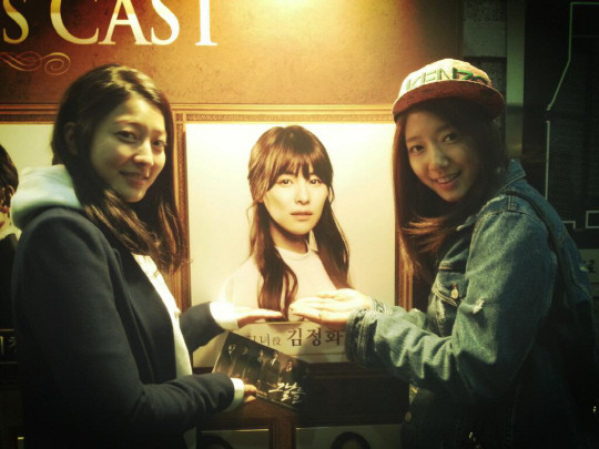 이는 지난 5일 김광석 노래 뮤지컬 '그날들'로 6년 만에 뮤지컬 무대에 컴백한 소속사 '큰언니' 김정화의 공연을 감상한 후 인증샷을 남긴 것. 공개된 사진 속 박신혜와 박세영은 김정화의 CAST 사진 앞에서 환한 미소를 지으며 카메라를 바라보고 있다.