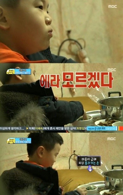 결국 윤후는 “에라 모르겠다”며 젓가락 사용 대신 손을 이용해 김을 밥에 싸먹는 먹방을 보여 보는 이들을 폭소케 했다.