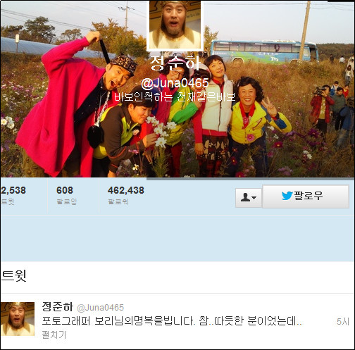 이에 개그맨 정준하는 자신의 트위터에 “포토그래퍼 보리님의 명복을 빕니다. 참..따뜻한 분이었는데..”라는 멘션을 적었다.