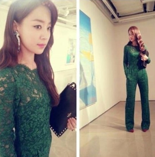 공개된 사진 속 한지혜는 초록색 레이스로 된 시스루 점프 수프를 입고 도도하면서도 우아한 매력을 드러냈다. 특히, 다소 난해한 의상임에도 굴욕 없는 S라인 몸매와 긴 기럭지로 완벽하게 소화해내 보는 이들의 시선을 사로잡았다.