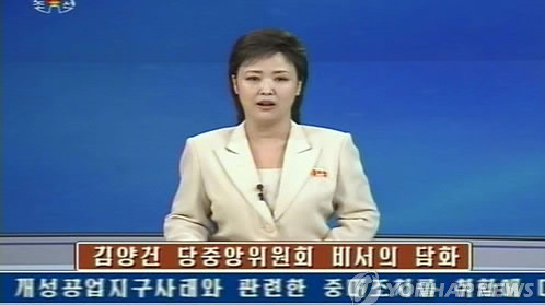 김양건 북한 노동당 대남비서 겸 통일전선부장이 하루 전인 8일 개성공단을 찾아와서 둘러본 다음, 저녁에 조선중앙통신을 통해 담화를 발표했다.