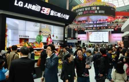 LG전자는 지난 6일과 7일 양일간 서울 잠실 롯데월드 아이스링크에서 <LG 시네마3D 월드 페스티벌>을 열고 첫날만 4만명 이상의 관람객을 동원했다고 밝혔다.