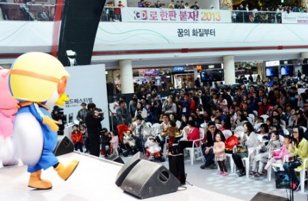 메인무대에는 55형 49대로 만든 <LG 디지털 사이니지- 385형 3D 비디오월>로 <뽀로로>와 <비트파티> 등의 인기 애니메이션을 3D로 선보였다.