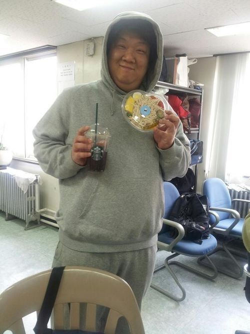 공개된 사진 속 편안한 후드티를 입은 유민상은 한 손에 닭 가슴살 샐러드를, 다른 손에는 테이크아웃 커피를 들고 카메라를 향해 밝게 웃고 있다. 특히, 그의 큰 몸집으로 인해 벤티 사이즈 같지 않은 커피와 닭가슴살이 유독 많은 샐러드가 웃음을 자아냈다.