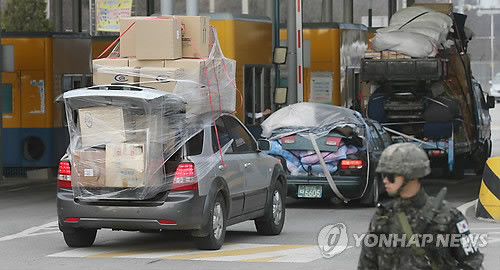"안전모를 쓴 군인들이 평소처럼 트럭 짐칸에 타고 건설 현장으로 가고,