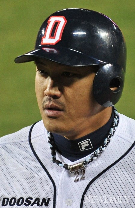 12일 오후 서울 잠실구장에서 2013 프로야구 <두산 베어스>와 <롯데 자이언츠>의 경기가 열린 가운데 2회말 두산 홍성흔이 아웃돼 덕아웃으로 향하고 있다.