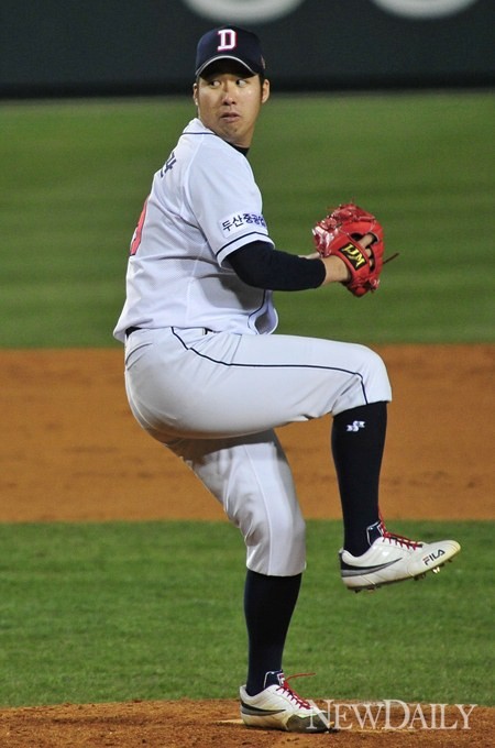 12일 오후 서울 잠실구장에서 2013 프로야구 <두산 베어스>와 <롯데 자이언츠>의 경기가 열린 가운데 두산 유희관이 투구하고 있다.