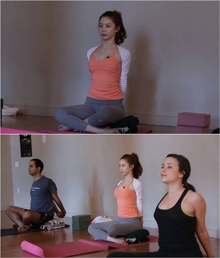 박수진이 뉴요커들과 요가에 도전했다.