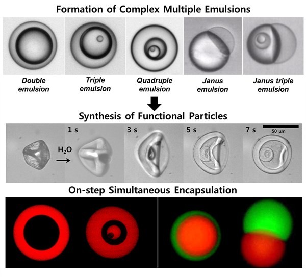 다양한 약물을 함께 복용했을 때 생기는 부작용을 줄일 수 있는 기술이 개발됐다.[복잡한 형태의 물방울(에멀전·emulsion)]은 내부에 다양한 물질을 담을 수 있어 약물 전달, 화장품이나 도료 제조 등에 다양하게 활용될 수 있다.관건은 내부에 물질을 담는 능력과 균일한 크기로 제조하는 공정이다.이 에멀전을 손쉽게 제조할 수 있는 마이크로 기술을 충남대학교 이창수 교수 연구 그룹이 개발했다.이 교수와 최창형 박사과정 학생이 주도한 이번 연구는 물방울 모양을 바꿔 손쉽게 에멀전을 형성하도록 하는데 성공했다.나아가 이렇게 만들어진 물방울을 고체화해 마이크로캡슐을 제작하고, 온도변화에 따라 안에 담긴 약물이 방출될 수 있다는 것도 확인했다.